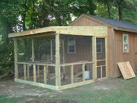 After the chicks came home, then came talk about coop designs. Jason originally thought he would built something behind the shed with scrap wood and materials. After looking at pictures on the Internet I knew I wanted something a bit bigger and safer. Thank God that I have such a talented and skilled husband - not only did he build the coop I envisioned, but he built the coop that would be later named "The Sarver Poultry Palace".